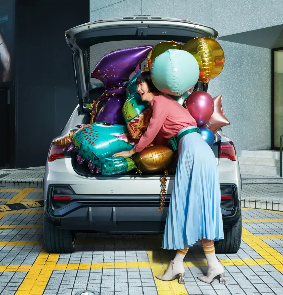 El asiento trasero plus ofrece espacio para tres personas y se puede desplazar longitudinalmente 130 milímetros; sus respaldos de tres posiciones se pueden inclinar en siete niveles. El volumen del maletero oscila entre 5.302 y 1.4002 litros. El portón trasero eléctrico14 se puede abrir cómodamente con un gesto del pie.