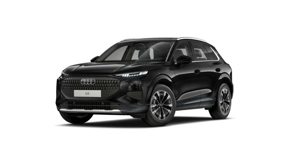 Presencia potente, diseño único: El Audi Q3 SUV impresiona con su vista frontal, que incluye la parrilla posicionada verticalmente. Las llamativas aletas en L con las marcadas tomas de aire, en combinación con los esbeltos faros, refuerzan su apariencia dominante.